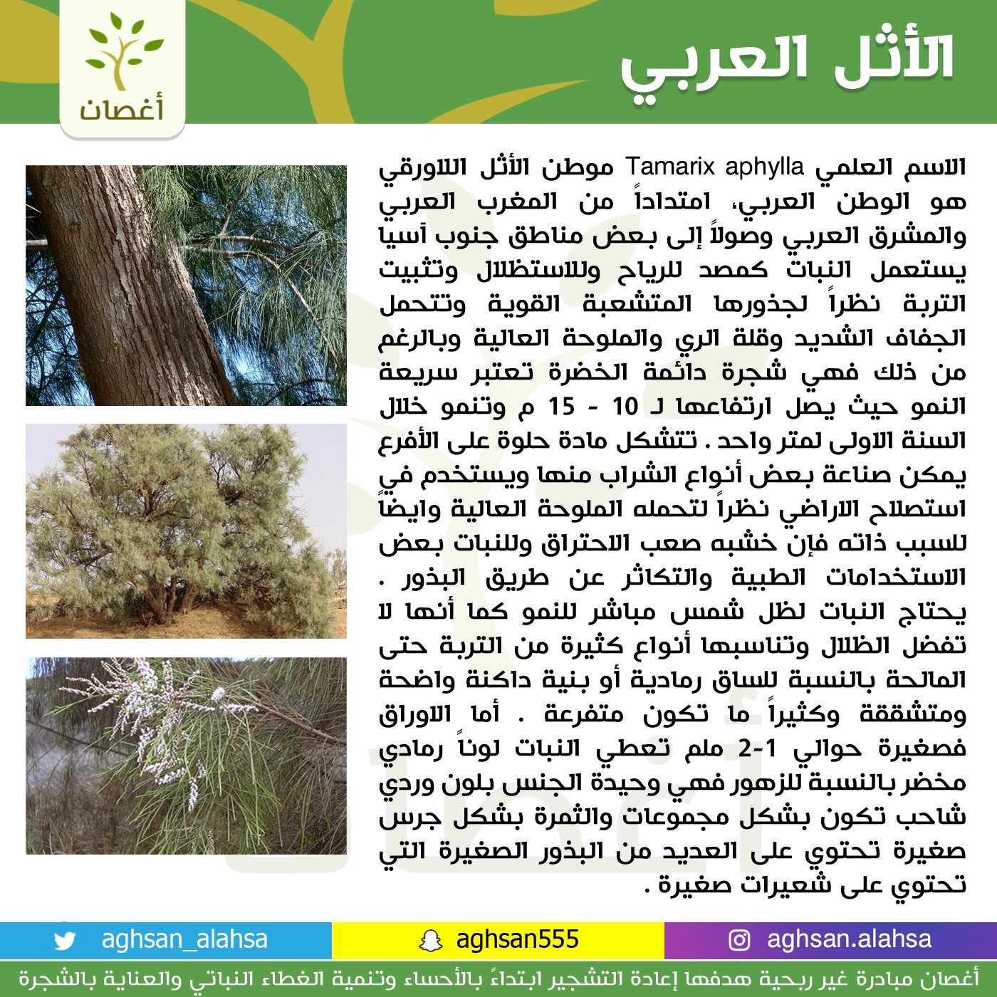 أغصان Auf Twitter شجرة الاثل العربي دائمة الخضرة وقوية تتحمل الحرارة الشديدة والجفاف والملوحة مليون شجرة في الاحساء تشجير الاحساء أغصان رتويت للتغريدة Https T Co Wbmtlrmau2