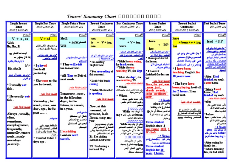 يهمنا غير الباك جدول ازمنة اللغة الانجليزية Pdf