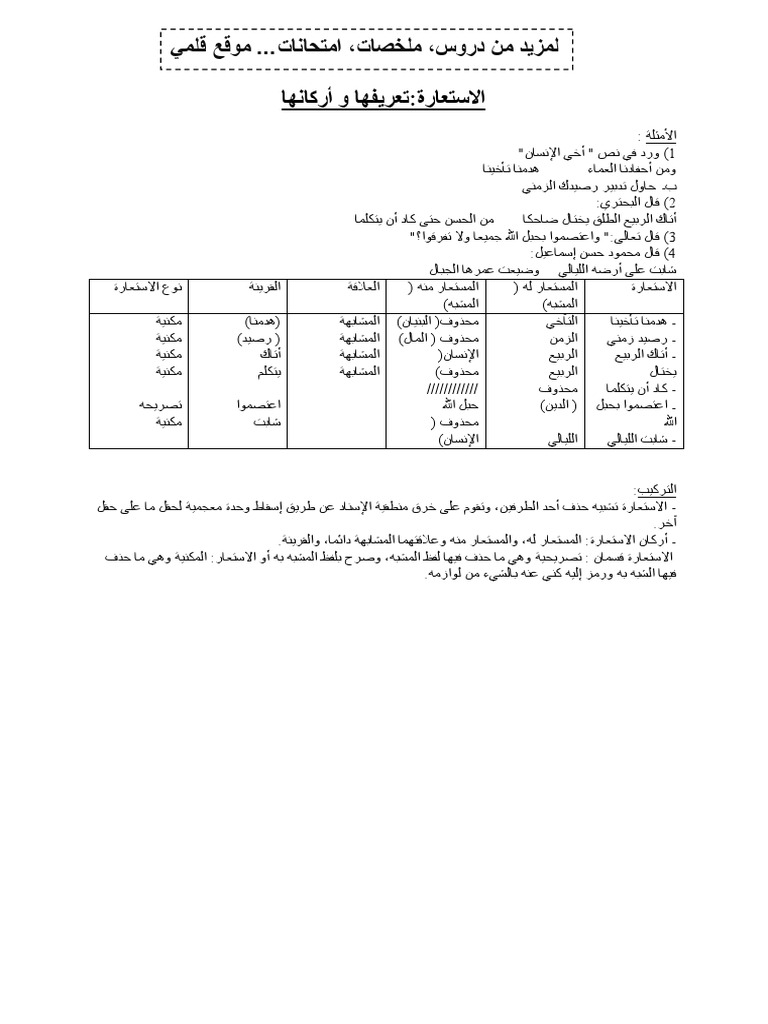 درس الاستعارة Pdf