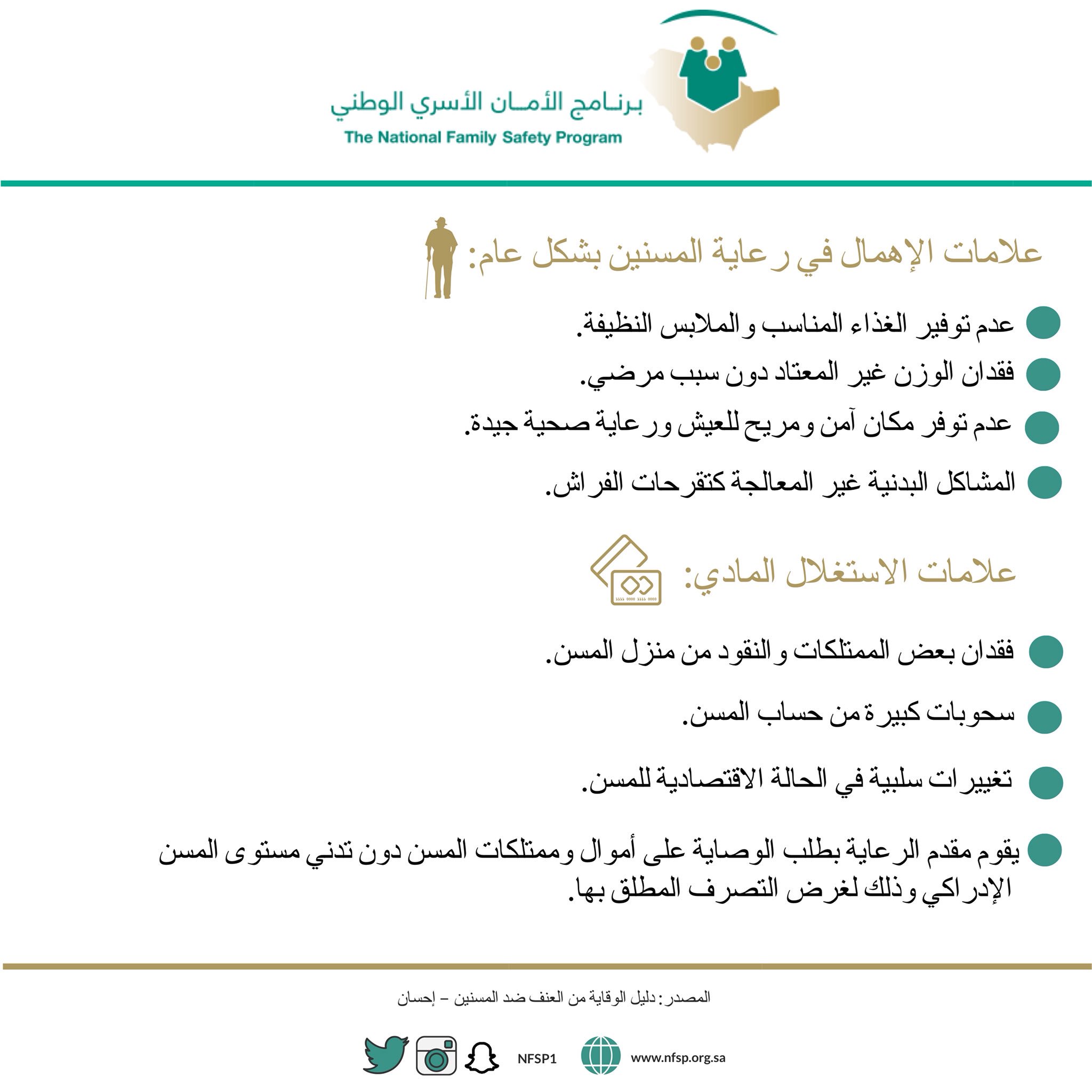 برنامج الأمان الأسري On Twitter تعرف على علامات إهمال المسنين وكذلك علامات الاستغلال المادي لهم كبار السن اليوم العالمي للمسنين