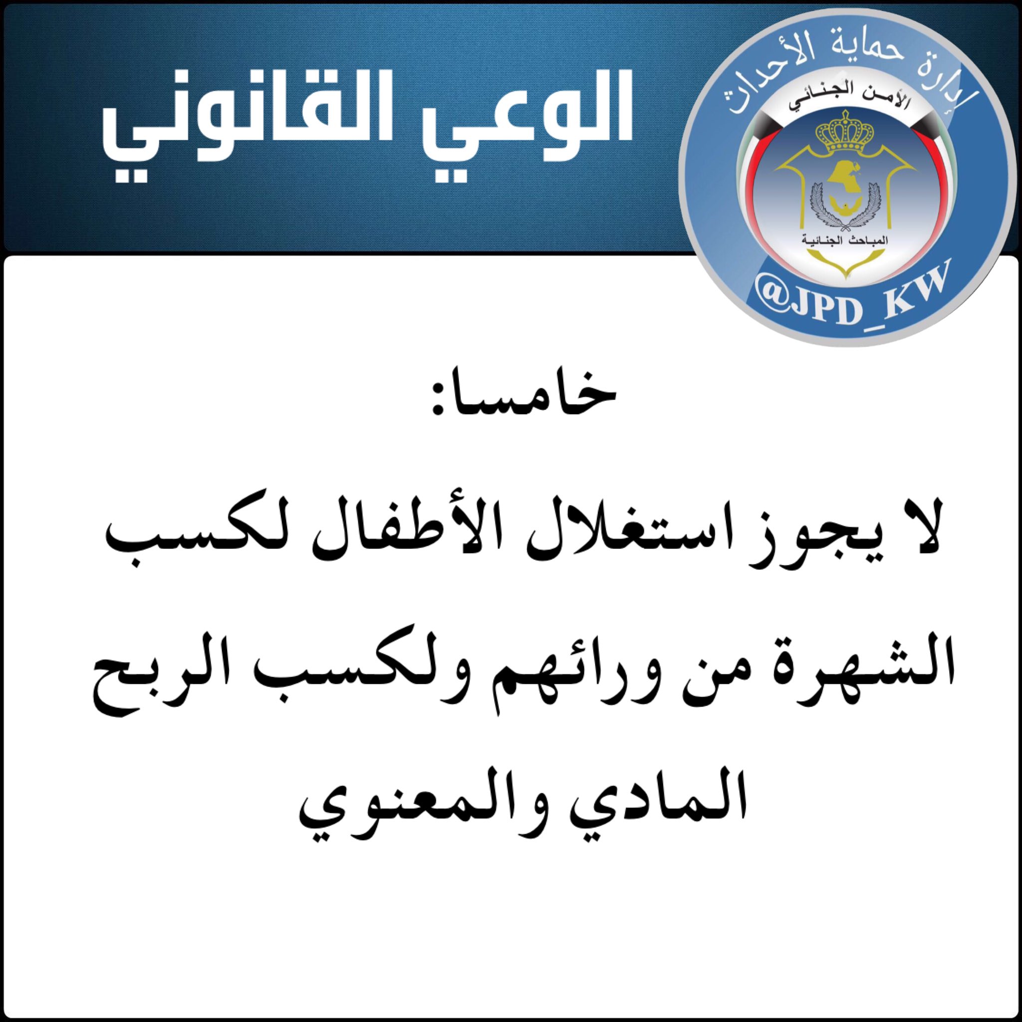 إدارة حماية الأحداث On Twitter خامسا لا يجوز استغلال الأطفال لكسب الشهرة من ورائهم ولكسب الربح المادي والمعنوي عن طريق الاندفاع والهوس بنشر صور أو مشاهدة لهم ومشاركة الآخرين بها لإبداء الإعجاب