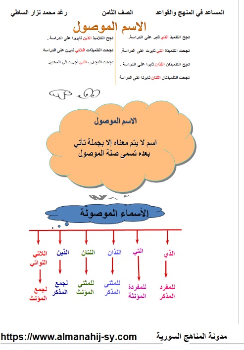 حل درس الاسم الموصول في اللغة العربية للصف الثامن الفصل الاول