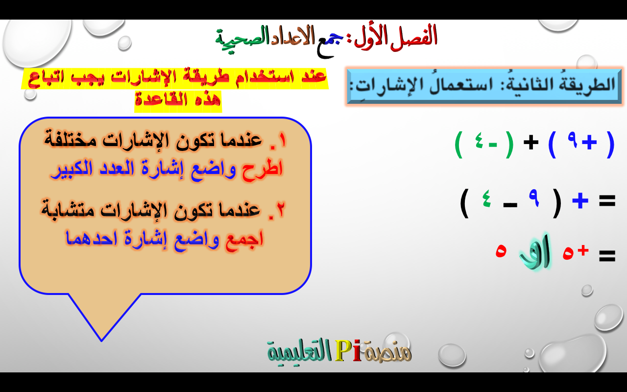 جمع الاعداد الصحيحة لصف السادس الابتدائي المنهج الجديد ٢٠٢١