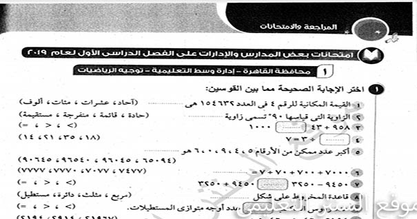 امتحانات الأضواء فى الرياضيات للصف الثالث الابتدائى الترم الاول 2020 للعام السابق