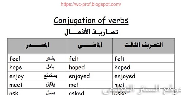 جدول تصريف الافعال الشاذة في اللغة الانجليزية مدرس دوت كوم