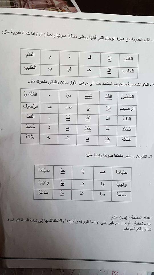 تدريبات على تحليل الكلمات إلى حروف أستاذة أمنية وجدى Facebook