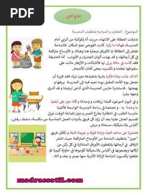 انتاج كتابي التعاون على تنظيف مدرسة