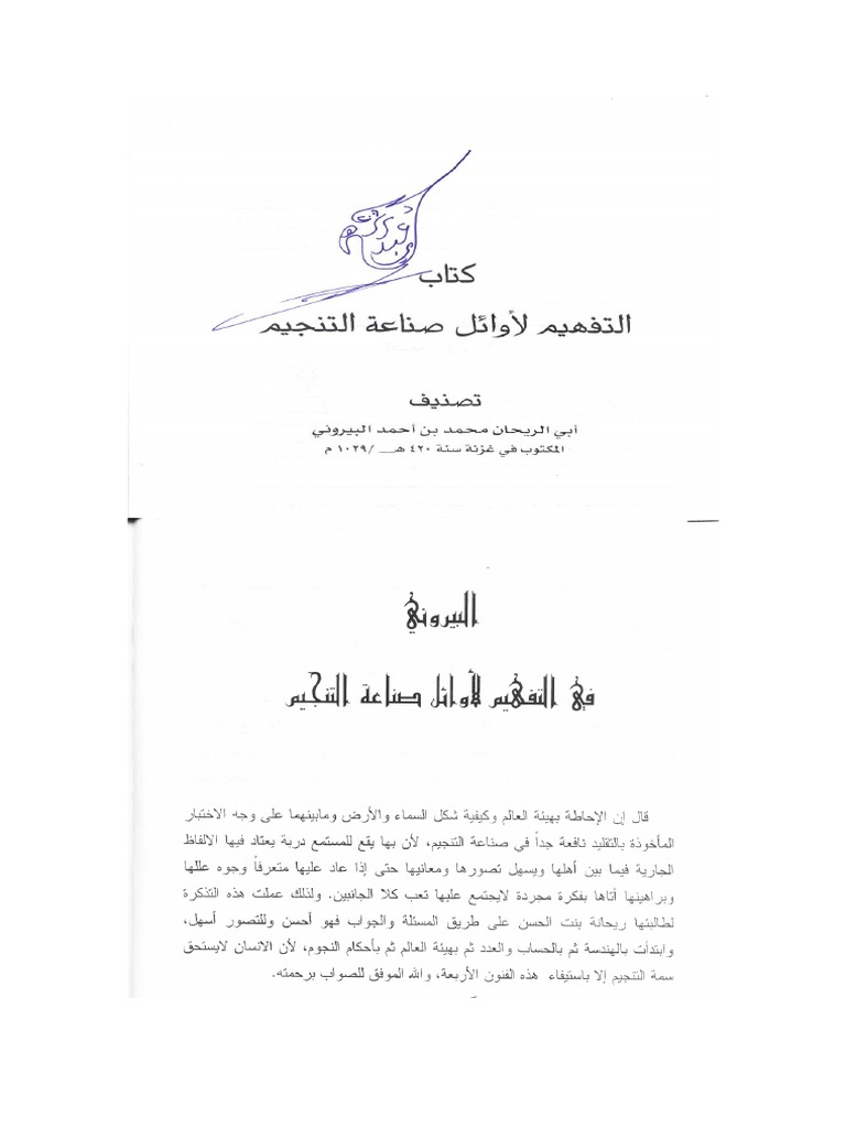 نسخة من كتاب البيروني التفهيم لأوائل صناعة التنجيم تاريخكم