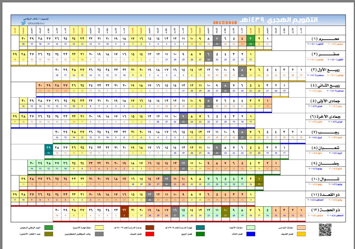 صالح الهدياني On Twitter التقويم الهجري لعام 1439