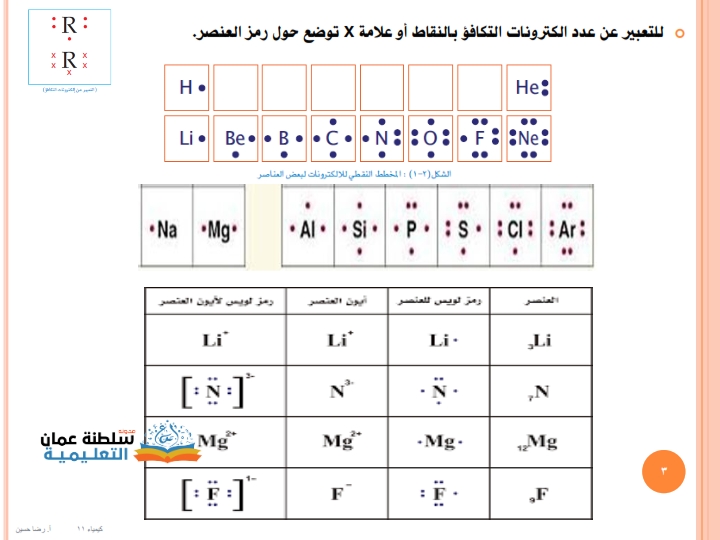 التمثيل النقطي للإلكترونيات تمثيل الإلكترونات بالنقاط حمدان الزهراني اتحاد الذرات علوم الفصل الأول ثالث متوسط المنهج السعودي