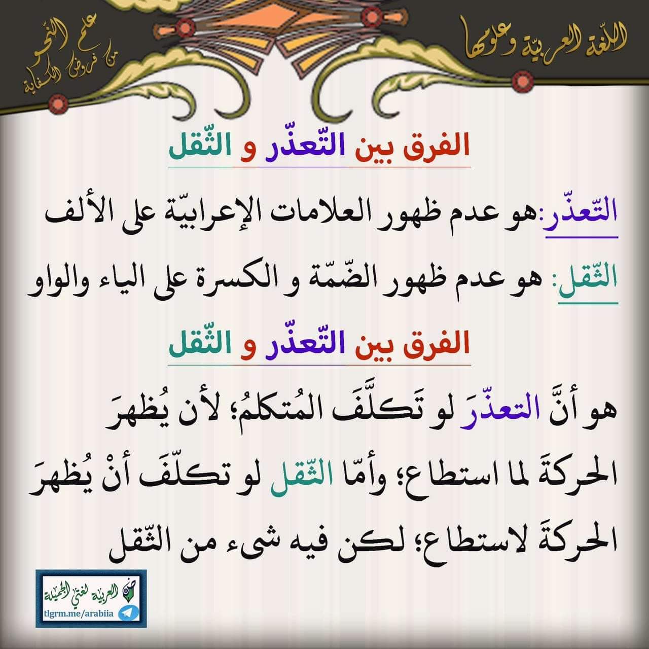 زاد اللغة العربية فائدة نحوية الفرق بين الثقل والتعذر مع الفعل المضارع المرفوع المعتل Facebook