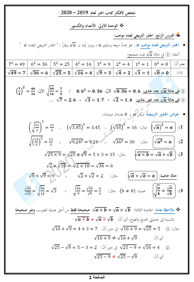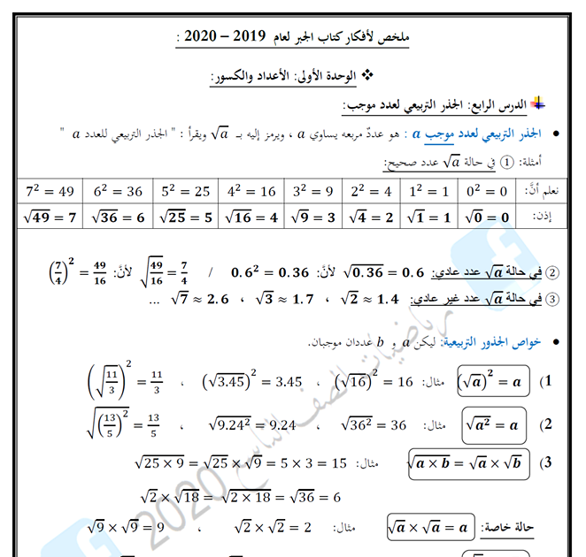 خواص الجذر التربيعي لعدد موجب A أ عبد مدرسة سورية الإلكترونية Facebook