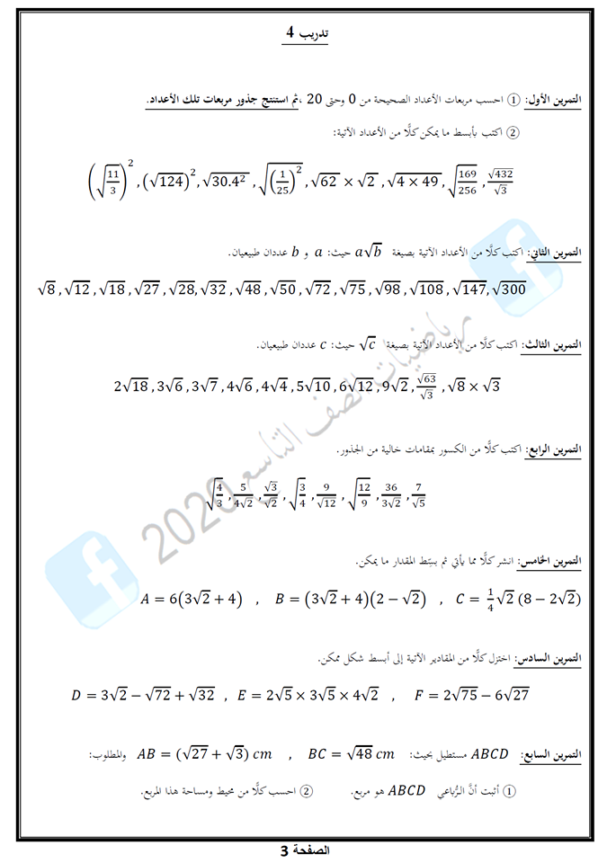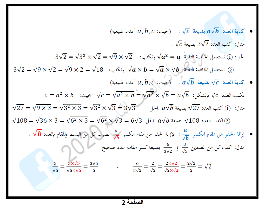 Math9byahm الجذر التربيعي لعدد موجب تاسع 2020 Facebook