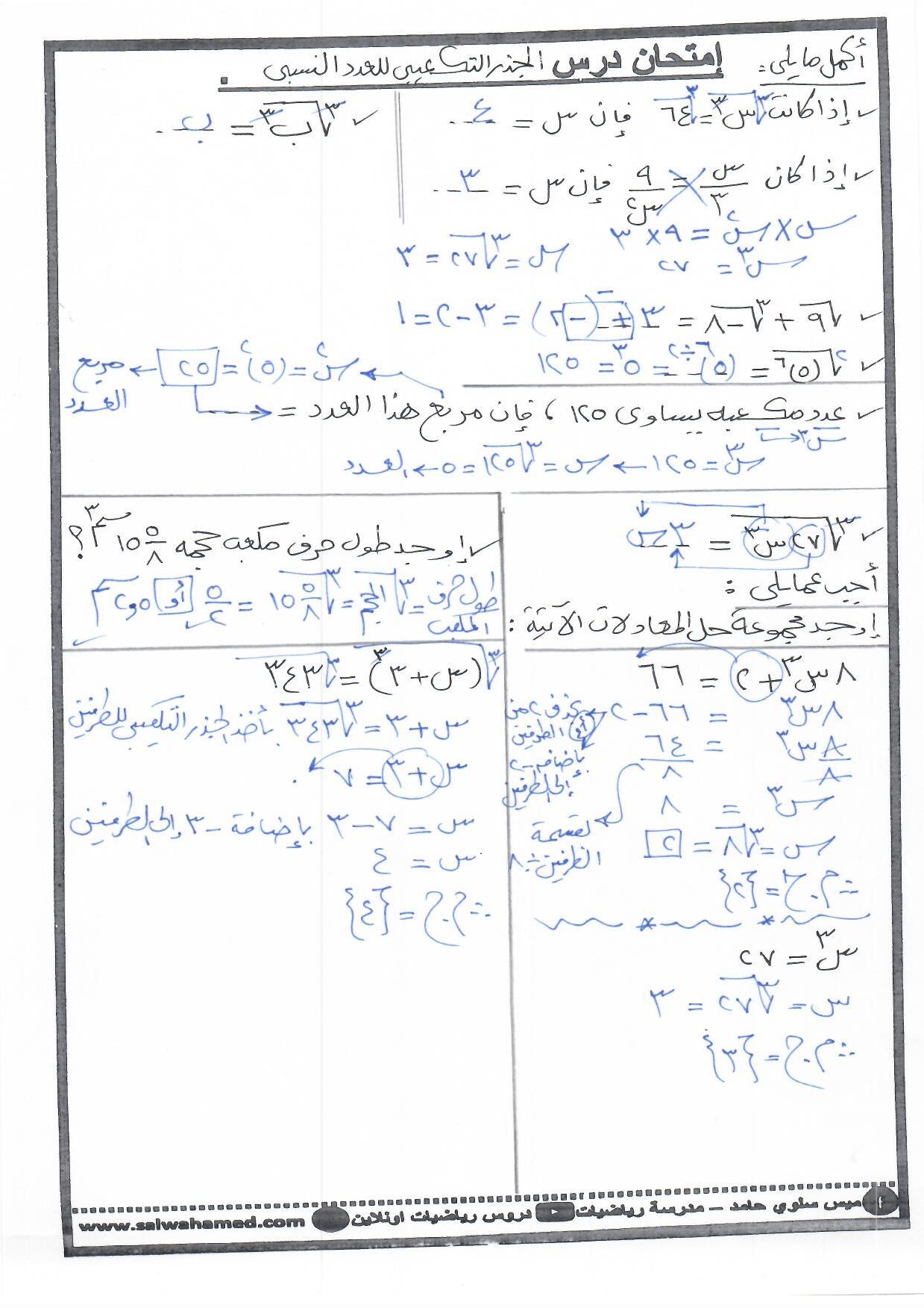 الجذر التكعيبي للعدد النسبي جبر للصف الثاني الاعدادي مدونة ميس سلوى حامد