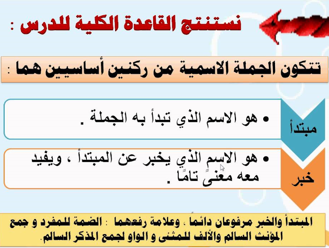 شرح الجملة الاسمية المبتدأ والخبر الصف الخامس
