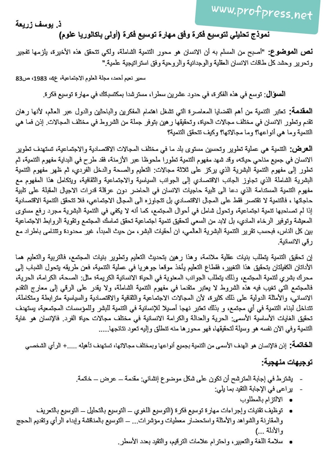 نموذج تحليلي لتوسيع فكرة وفق مهارة توسيع فكرة لتلاميذ الأولى بكالوريا موقع الأساتذة والتلاميذ للتعليم عن بعد