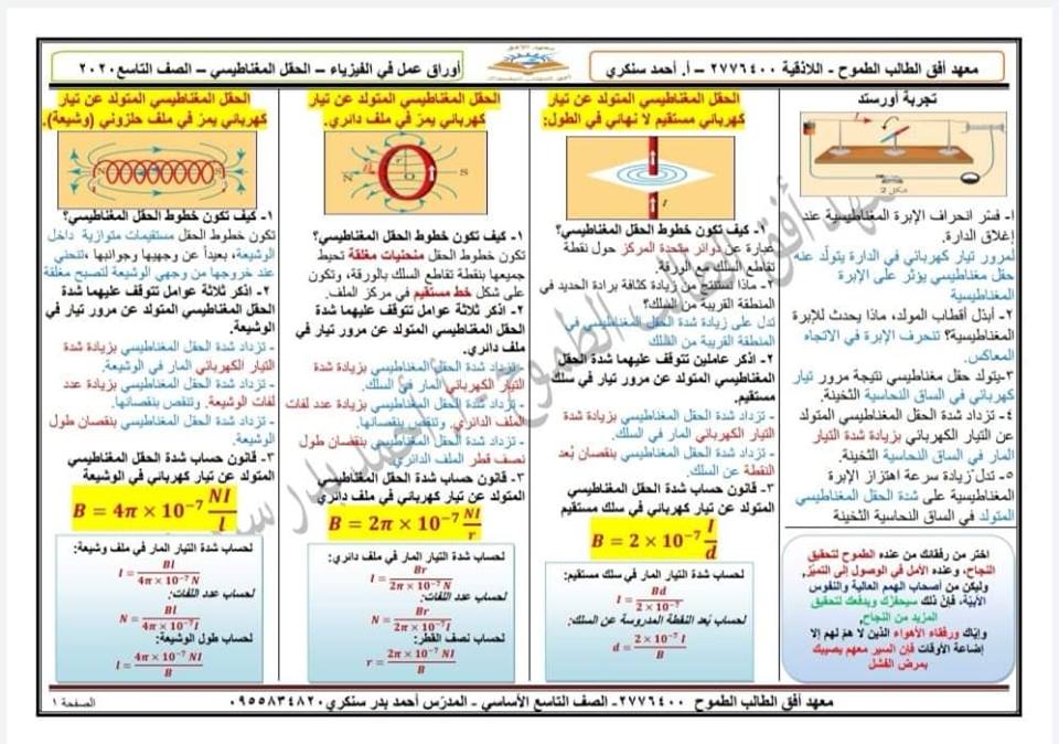 الحقل المغناطيسي المتولد عن تيار كهربائي للصف التاسع. الحقل المغناطيسي المتولد عن تيار كهربائي بحث عدد من الطلاب اليوم عن حل سؤال الحقل المغناطيسي المتولد عن تيار كهربائي للصف التاسع والذي يعتبر هو ضمن الأسئلة التي قد واجه فيه الطلبة التصعب الكبير فيعتبر الآن. أشكال المجالات المغناطيسية الناشئة عن تبار كهربائي. تتابعت الاكتشافات في مجال الكهرومغناطيسية على يد العديد من العلماء كأنديه أمبير الذي وضع المعادلة الرياضية التي تصف قوة التيار الكهربائي والقوة المغناطيسية التي تكون بين سلكين يمر بهما تيار كهربائي.