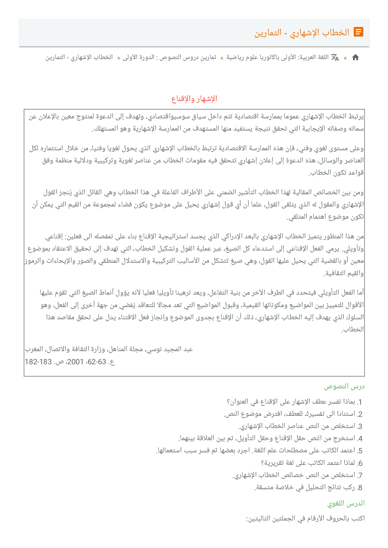 نص آليات الخطاب الإشهاري لحميد لحمداني تحليل النصوص واحة اللغة العربية الاولى باكالوريا