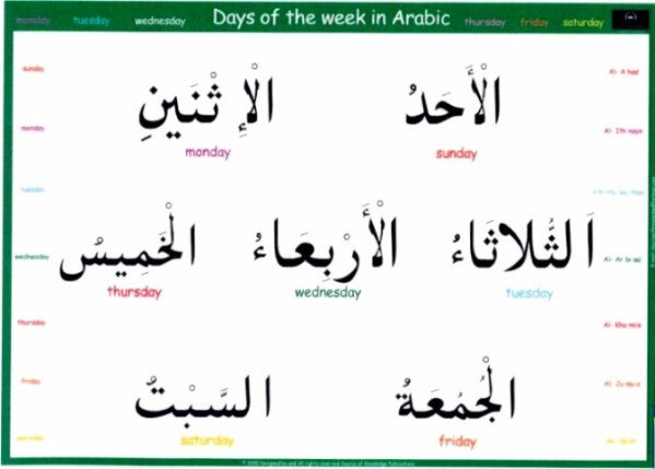 ايام الاسبوع بالانجليزي والعربي بالترتيب بالصوت English 100