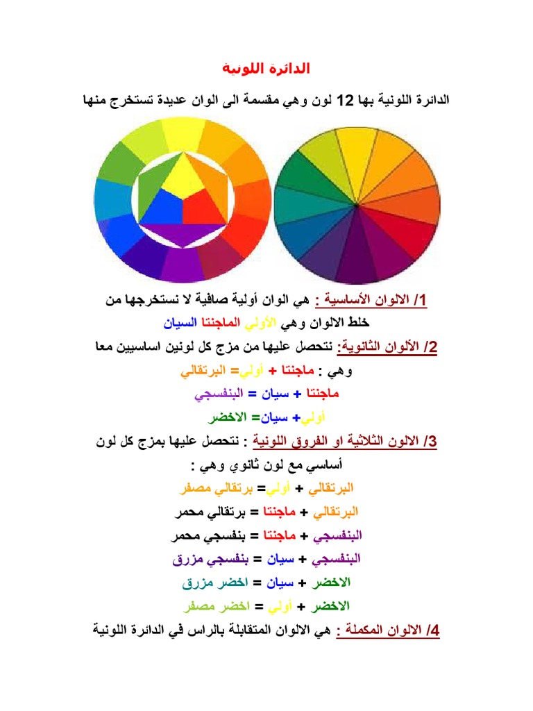 المفاهيم الأساسية لــ الألوان الالوان الاساسية والالوان الثانوية الالوان الساخنة و الباردة و تاثيراته والالوان المحايدة عجلة دولاب أو دائرة الألوان في الثقافة والتذوق الفني للألوان مجلة فن التصوير