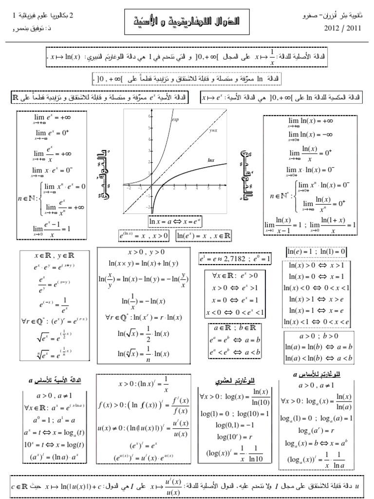 ملخص الدوال الاسية و اللوغاريتمية في الرياضيات للسنة الثالثة ثانوي الشعب العلمية. هي دالة مكتوبة على الصورة y ab x حيث a 0 b 0 b 1 سنلاحظ ان الأساس في الدالة الاسية ثابت. ملخص الدوال الأسية و اللوغاريتمية رياضيات سنة ثالثة ثانوي اضف تعليق السنة الثالثة ثانوي مادة الرياضيات شعب علمية علوم تجريبية رياضيات تقني رياضي تسيير و اقتصاد ملخص الدوال الأسية و اللوغاريتمية رياضيات سنة.