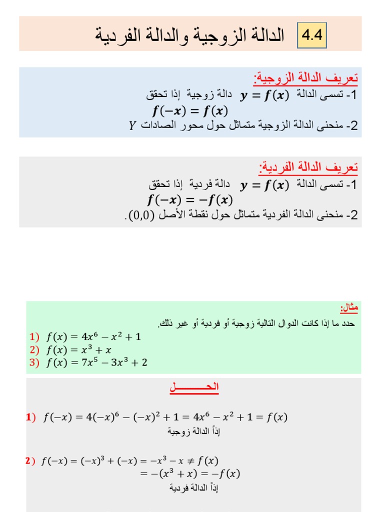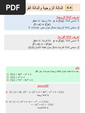4 4 الدالة الزوجية والدالة الفردية Pdf