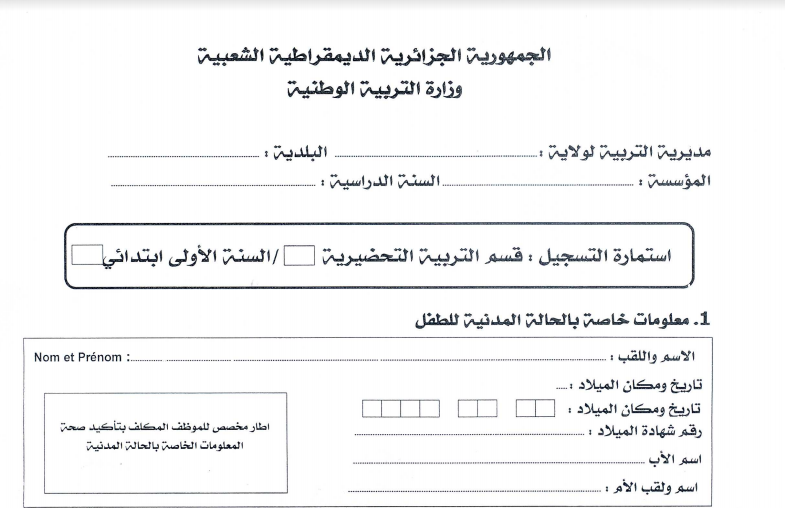 طلب استمارة تسجيل تلاميذ التحضيري Pdf