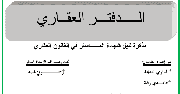 مذكرة ماستر الدفتر العقاري Pdf