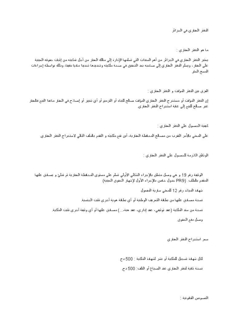 اللدفتر العقاري في الجزائر طلب الدفتر العقاري من المحافظة العقارية