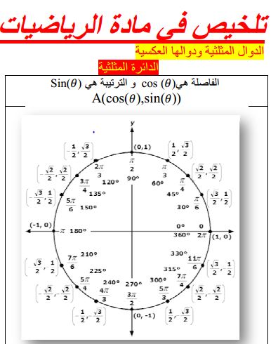 رياضيات مدرسة النجامية قوانين الدوال المثلثية