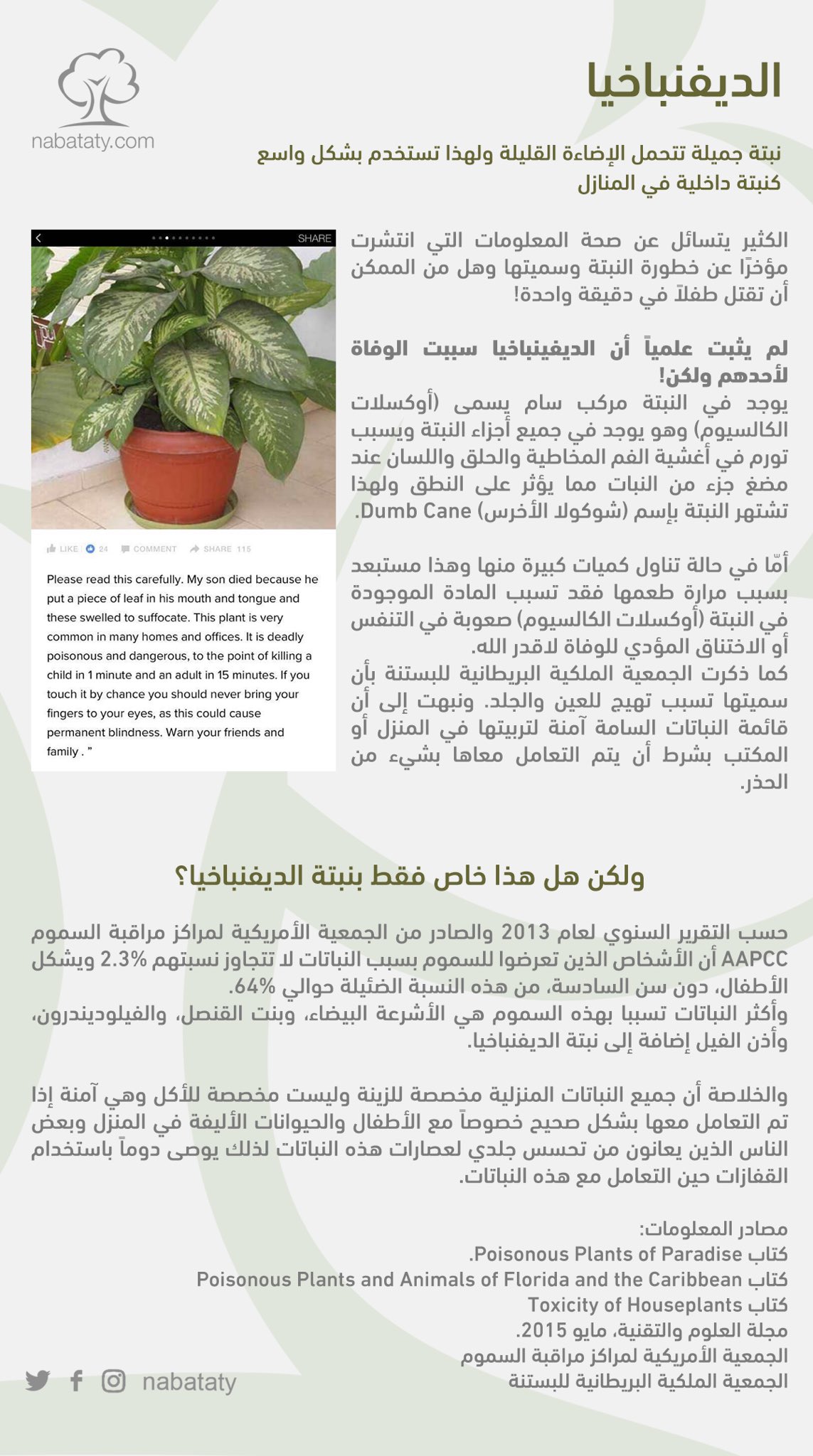 نباتاتي Auf Twitter الديفنباخيا نبتة جميلة وسامة ولكن هل من الممكن أن تقتل طفلا في دقيقة واحدة الإجابة