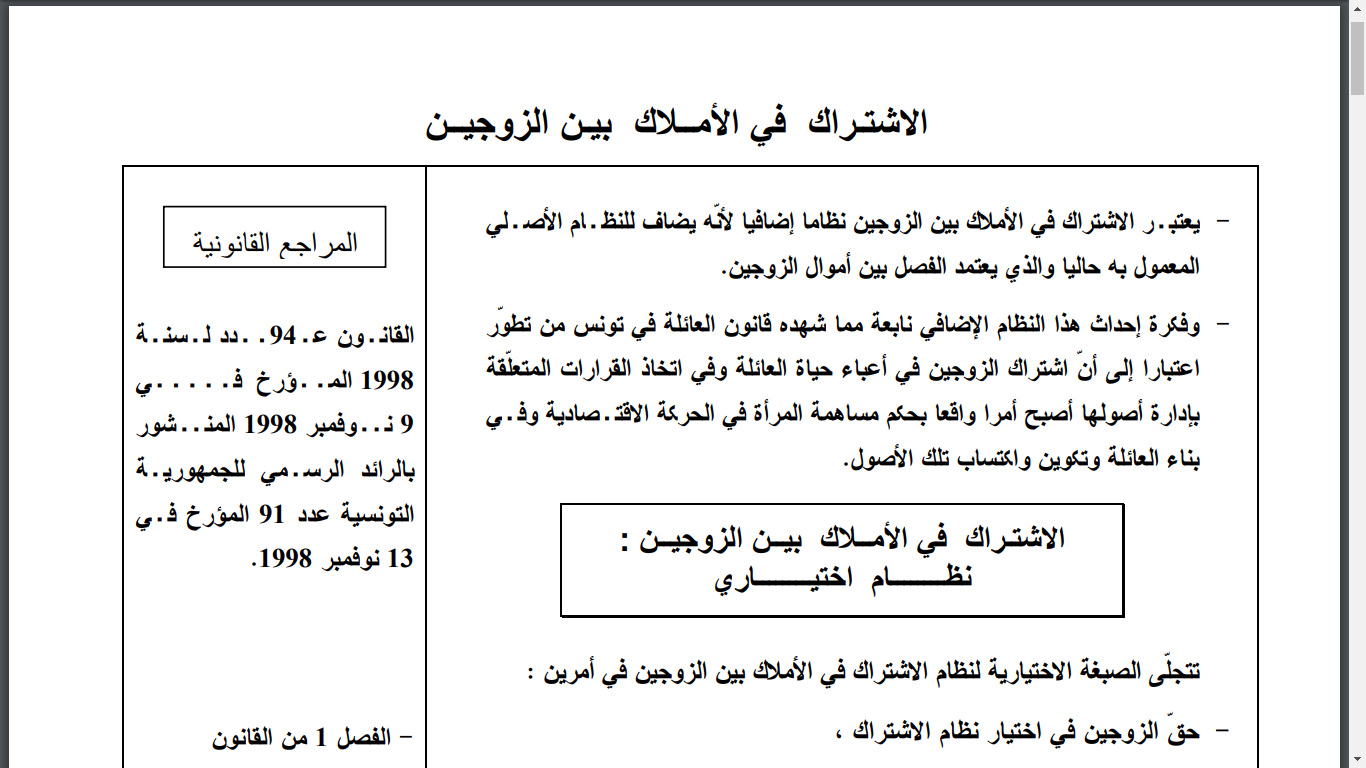 الذخيرة القانونية تلخيص قانون الاشتراك فى الاملاك بين الزوجين