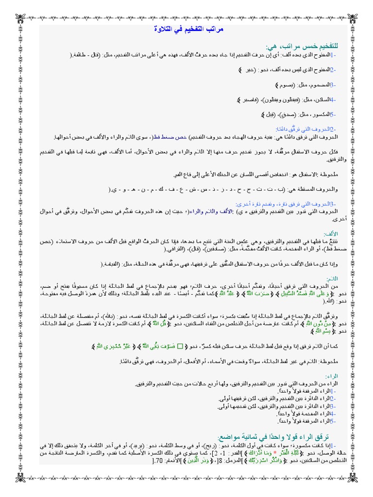 الحروف الهجائية بين التفخيم والترقيق تجويد القرآن الكريم