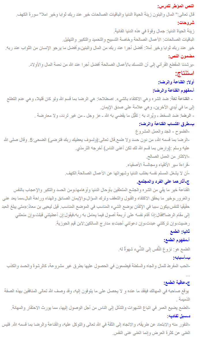القناعة والرضا للجذع المشترك مقرر جديد