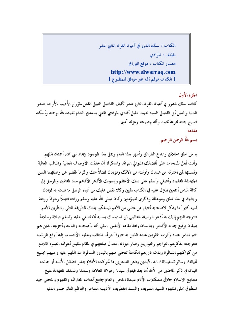 سلك الدرر في أعيان القرن الثاني عشر 001
