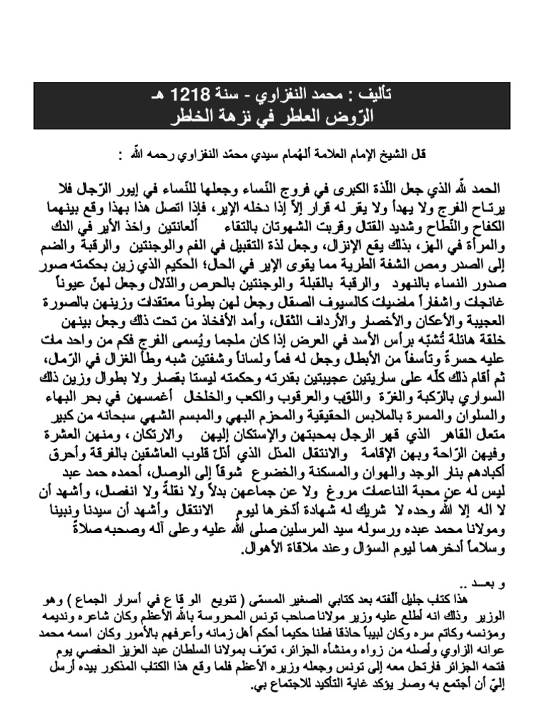 الروض العاطر فى نزهة الخاطر By النفزاوى العاطر في نزهة الخاطر Pdf Pdf Archive