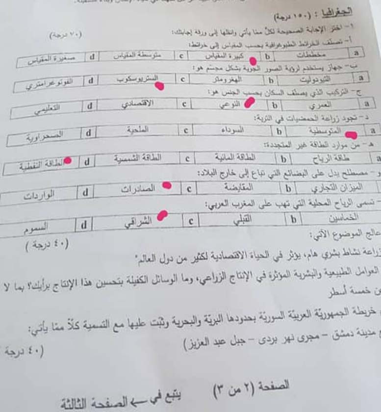 أسئلة امتحان السبر الترشيحي 2019 الفرع Syrian Geographic Facebook