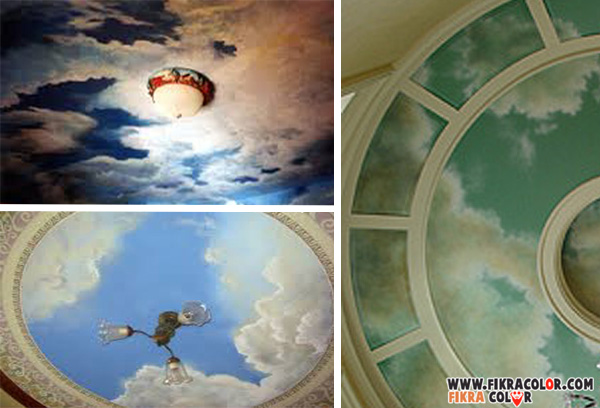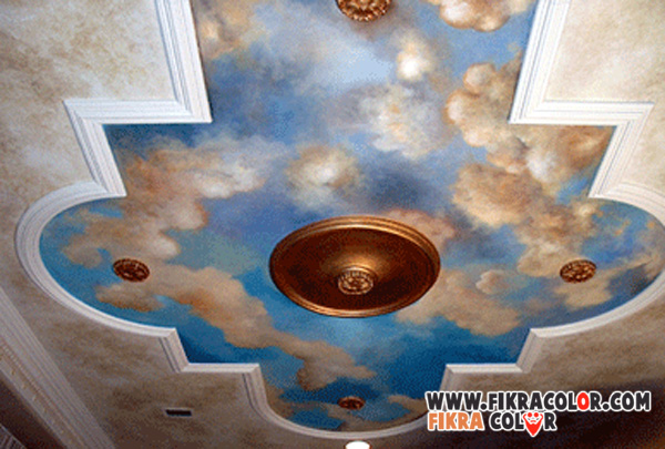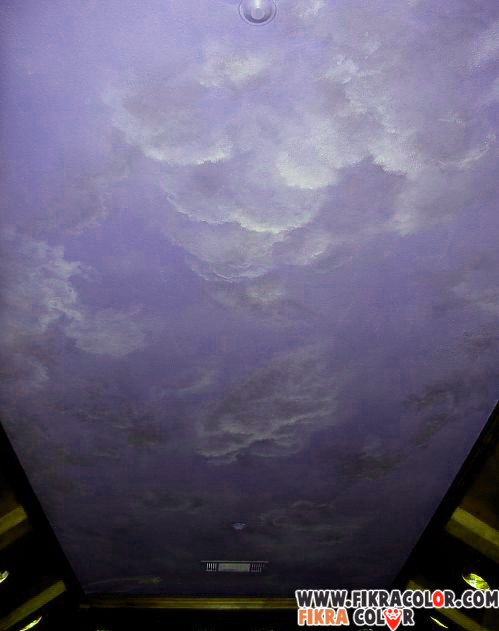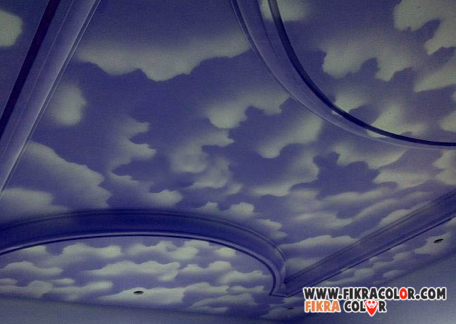 ديكورات رسم سحاب على السقف لأخذ الأفكار الى كل حرفي في مجال الدهانات Fikra Color