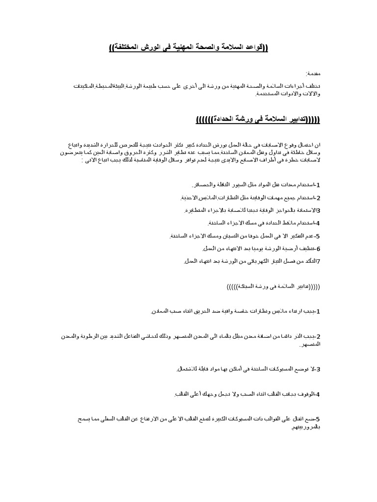 Pdf السلامة المهنية في الورش والمعامل الجامعية