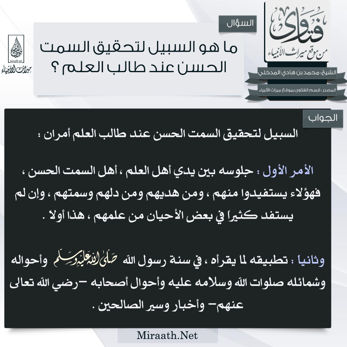 ميراث الأنبياء على تويتر بطاقة ماهو السبيل لتحفيق السمت الحسن عند طالب العلم للشيخ محمد بن هادي المدخلي حفظه الله Http T Co X4uwgydowa
