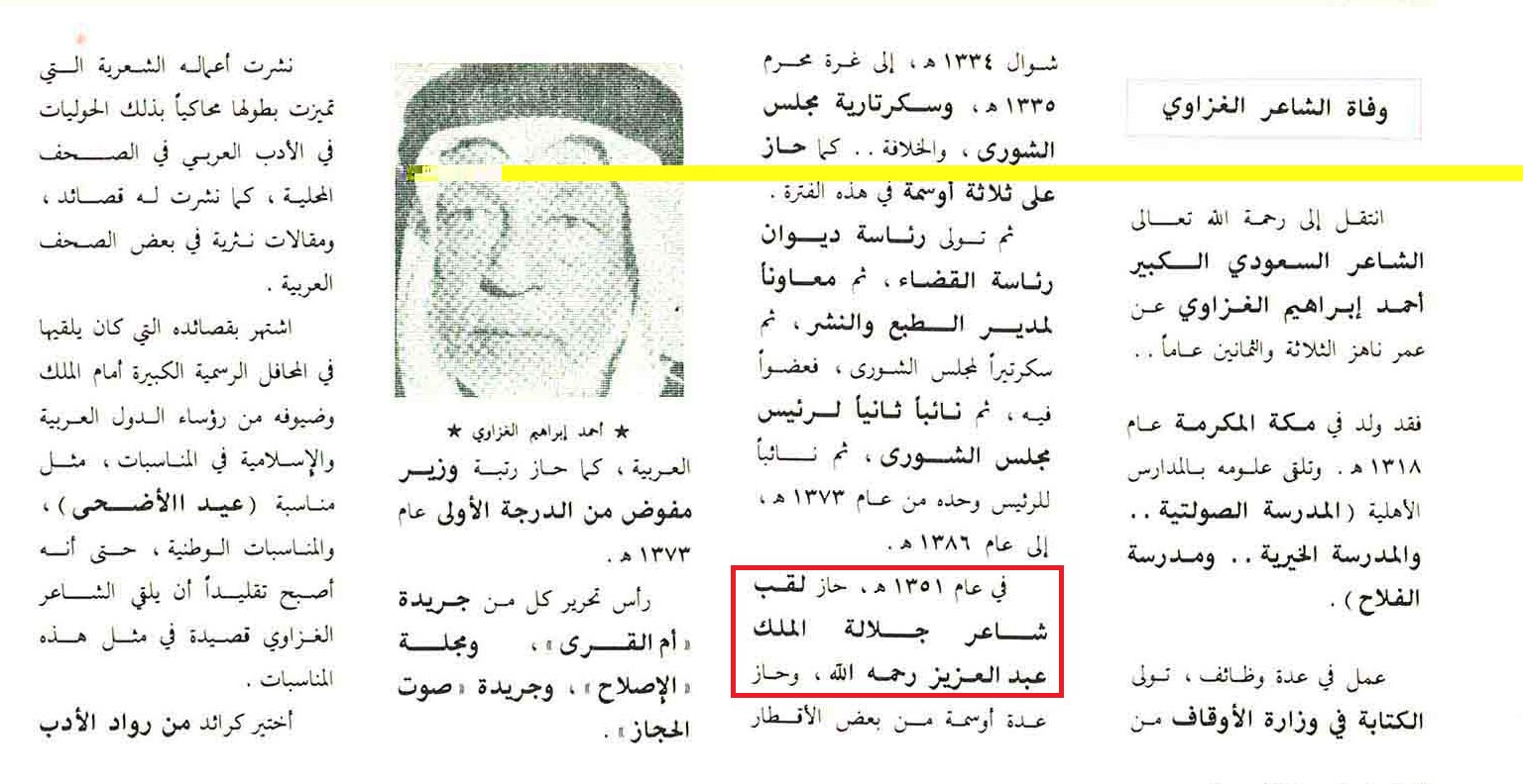 حسام مك اوي V Twitter خبر وفاة شاعر الملك عبدالعزيز الشيخ أحمد بن إبراهيم الغزاوي سنة 1401هج 1981م ونبذة عن حياته