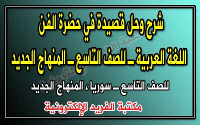 شرح وحل قصيدة في حضرة الفن ـ لمادة اللغة العربية ـ للصف التاسع ـ المنهاج الجديد مكتبة الفريد الإلكترونية