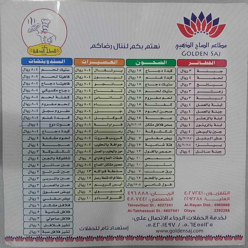 منيو الصاج الذهبي وارقام التواصل لجميع فروع الرياض