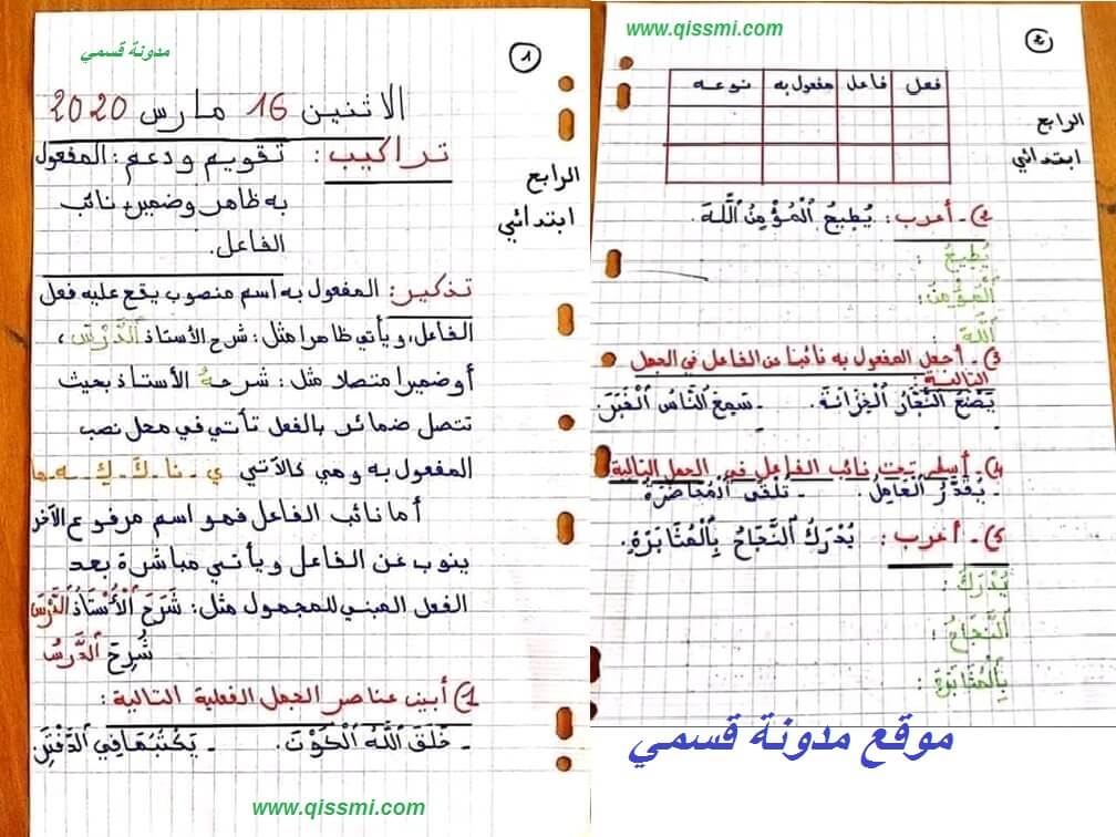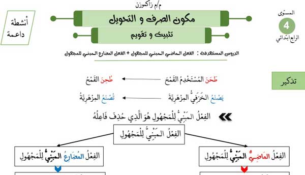 أنشطة داعمة في الصرف و التحويل المستوى الرابع موقع الأساتذة والتلاميذ للتعليم عن بعد