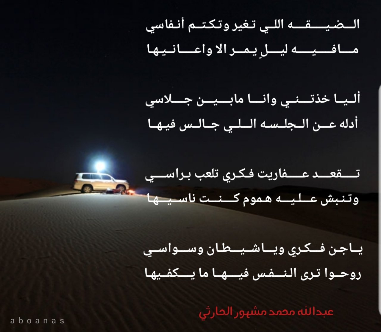 Uzivatel عبدالله فطيس الحارثي Na Twitteru الـــضـيـــــقــــه اللــي تـغير وتـكـتــم أنـفاسي مــــافـــــيـــــه ليــــل يـمـــر الا واعـــــانــيـهـا الشاعر عبدالله بن مشهور Https T Co Saqjj2sfac